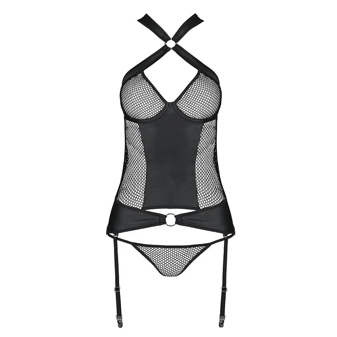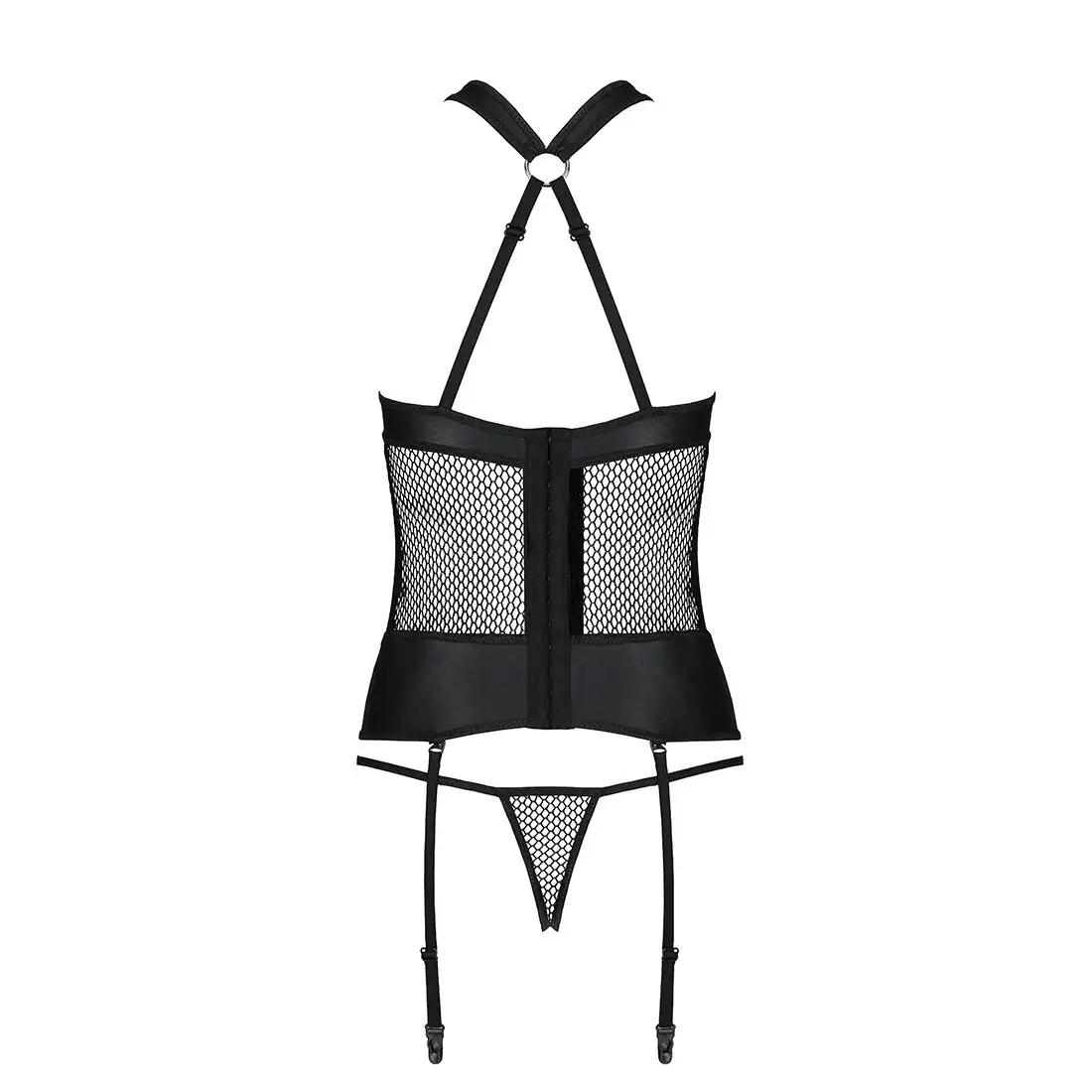 Сетчатый комплект корсет с халтером, съемные подвязки и трусики Amanda Corset black S/M - Passion