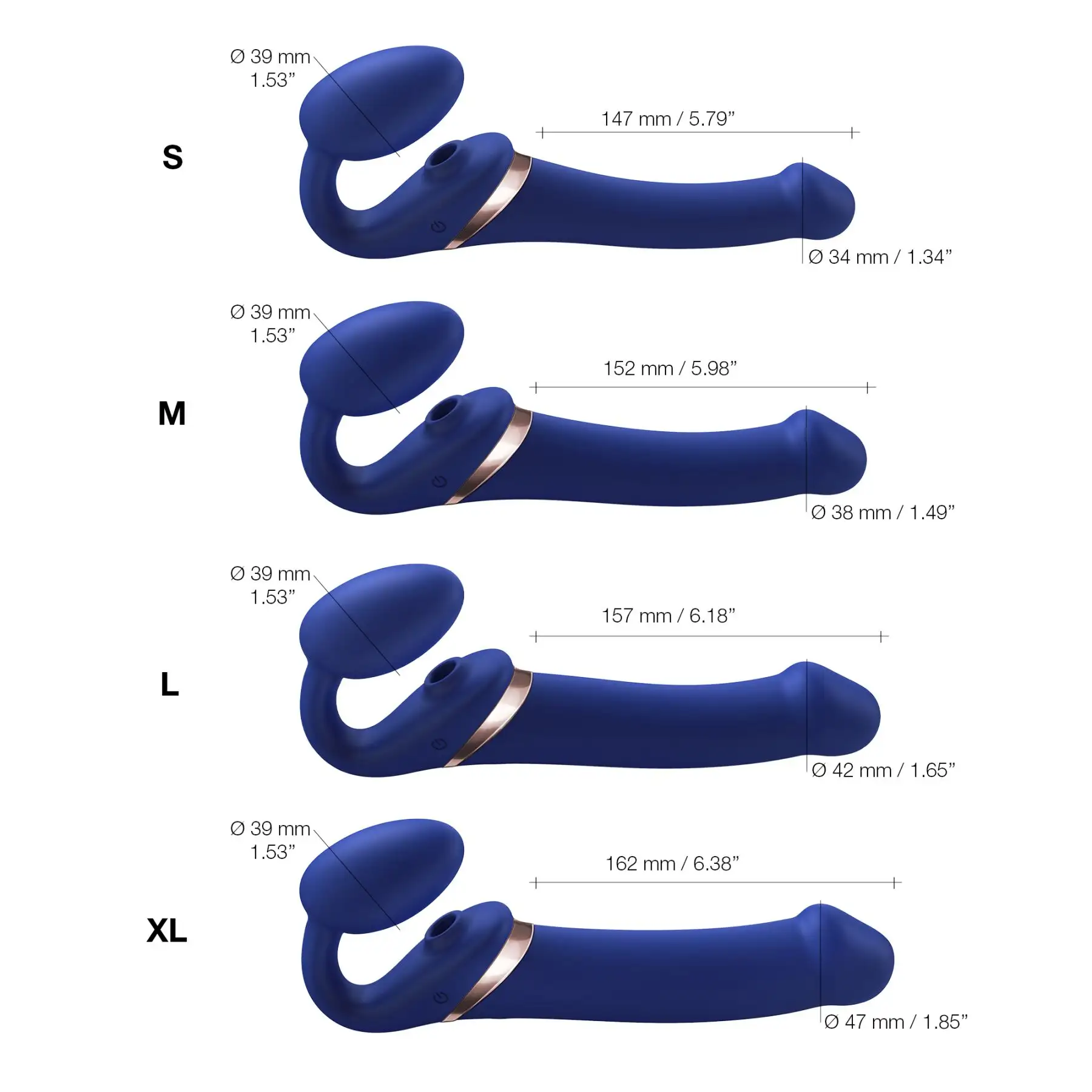 Фотографии Безремневой вибрострапон с вакуумной стимуляцией Strap-On-Me MULTI ORGASM Blue L, регулируемый