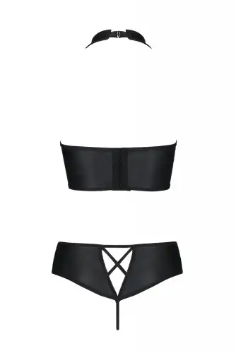 Этот комплект идеально подходит для тех, кто любит экспериментировать со своей коллекцией нижнего белья и хочет чего-то уникального и привлекательного. Материал из экокожи придает ему роскошный внешний вид, что делает его идеальным для особых случаев или интимных моментов с вашим партнером.