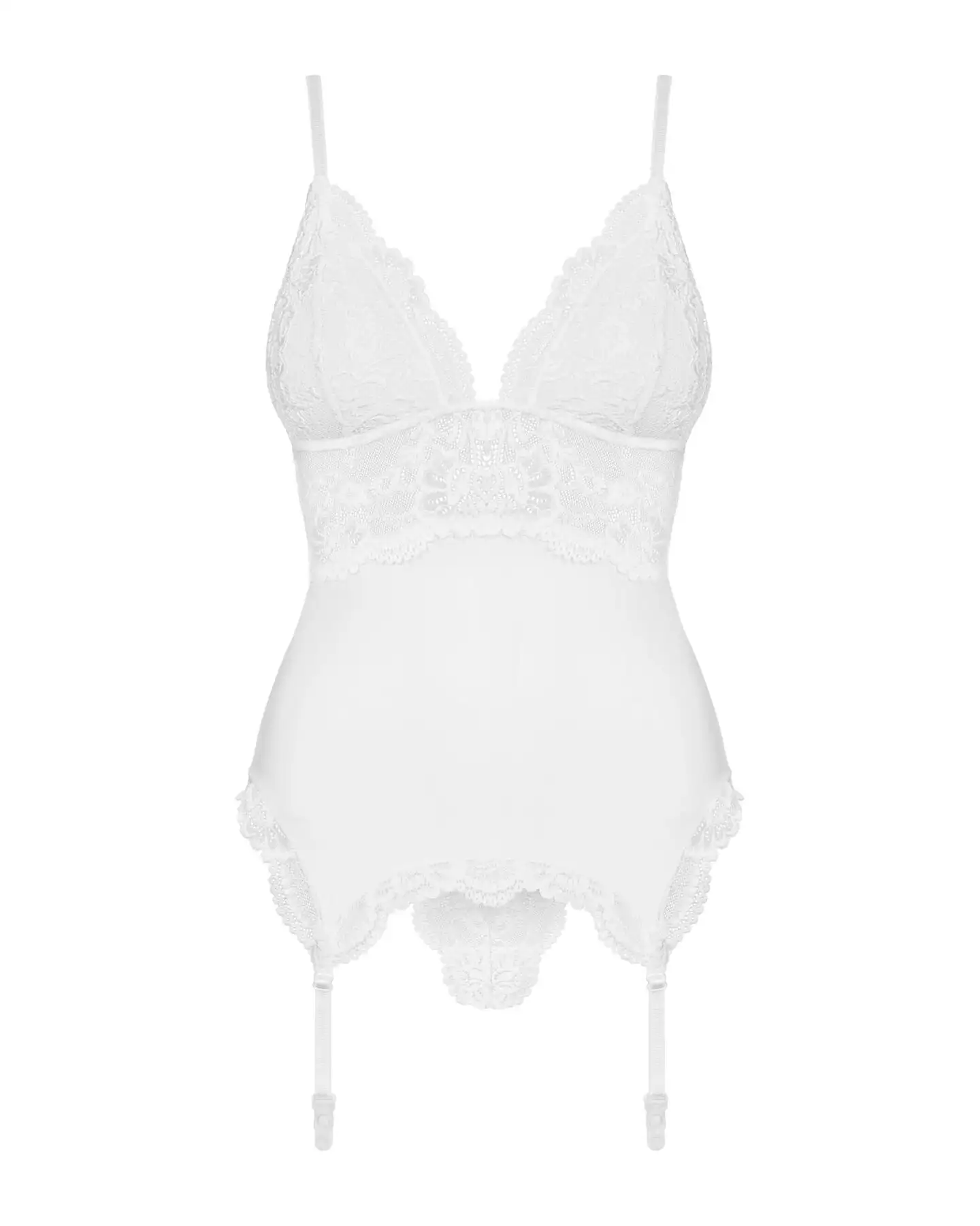 Фотографии Сатиновый кружевной корсет Obsessive 810-COR-2 babydoll & thong L/XL, белый, корсет, танга
