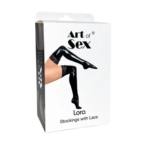 The Art of Sex - Виниловые чулки Lora с кружевом, размер L, черного цвета. Эти сексуальные чулки станут прекрасным дополнением к любой коллекции нижнего белья и обязательно заставят вас чувствовать себя уверенно и соблазнительно.