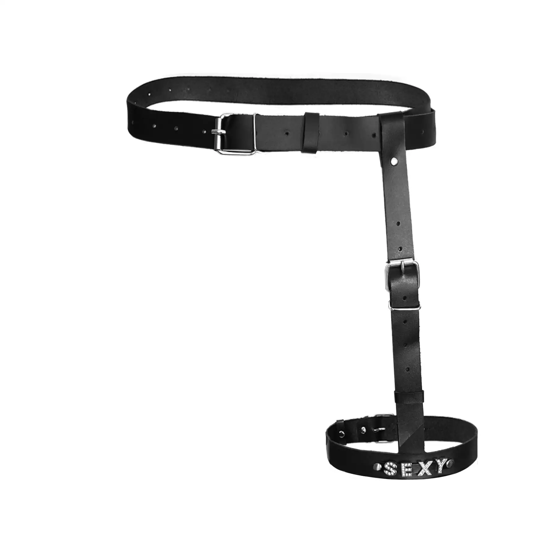 Искусство секса - подвязки для ног Naomi, обязательный аксессуар для любого комплекта сексуального нижнего белья. Подвязка изготовлена ​​из высококачественной натуральной кожи, прочная и удобная в носке. Гладкий черный цвет добавляет изысканности вашему образу, а яркая надпись «SEXY» делает заявление.