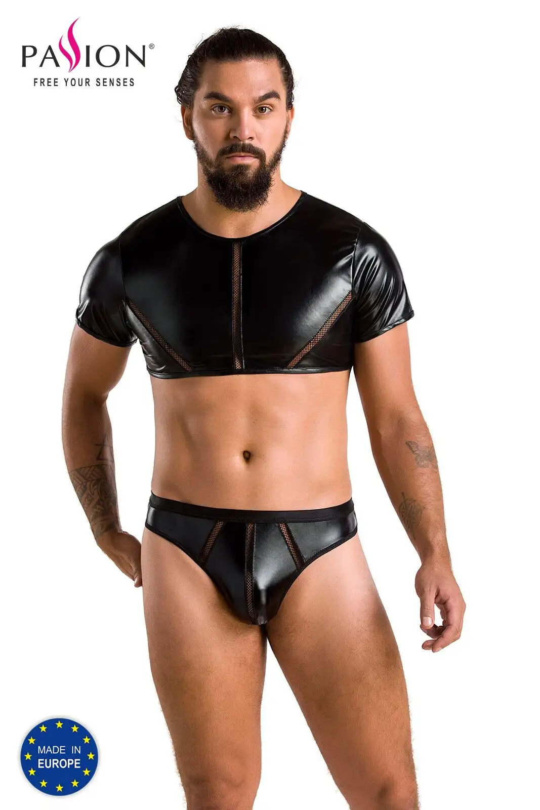 Комплект мужского белья под латекс Passion 057 Set Peter S/M Black, кроп-топ, стринги