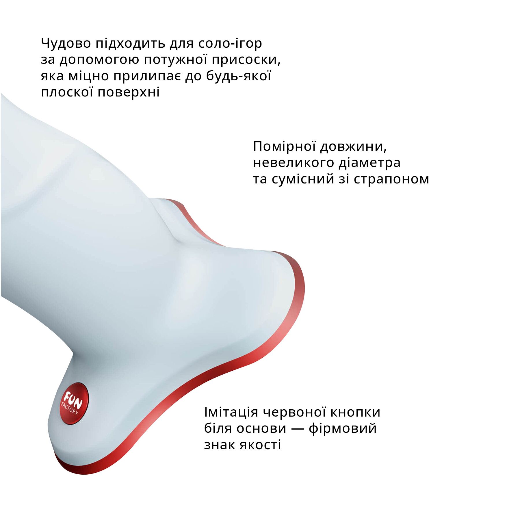 Этот фаллоимитатор изготовлен в Германии с соблюдением всех европейских стандартов качества. Его яркая деталь — красная кнопка у основания, подчеркивающая фирменный стиль Fun Factory.