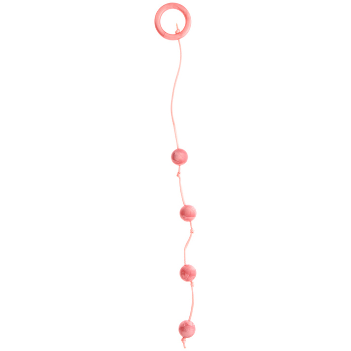 Игрушка включает 4 шарика со средним диаметром, которые соединены между собой тонкой нитью высокой прочности. Специальное кольцо у основания аксессуара способствует легкому изъятию цепочки из прямой кишки.