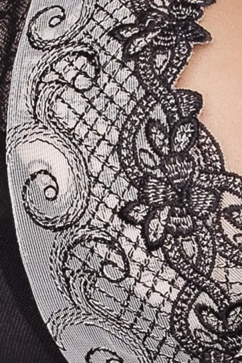 Пеньюар на 95% состоит из полиэстера с добавлением 5% эластана. Все материалы, из которых делают белье компании Passion, имеют мировой сертификат качества OECO-TEX. Сертификат свидетельствует о том, что изделия соответствует медицинским критериям качества и безопасности.