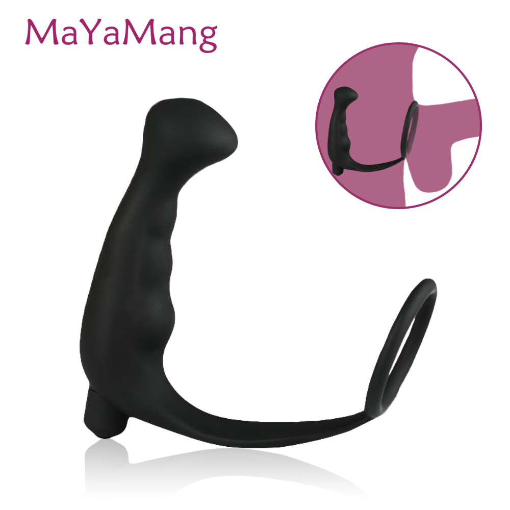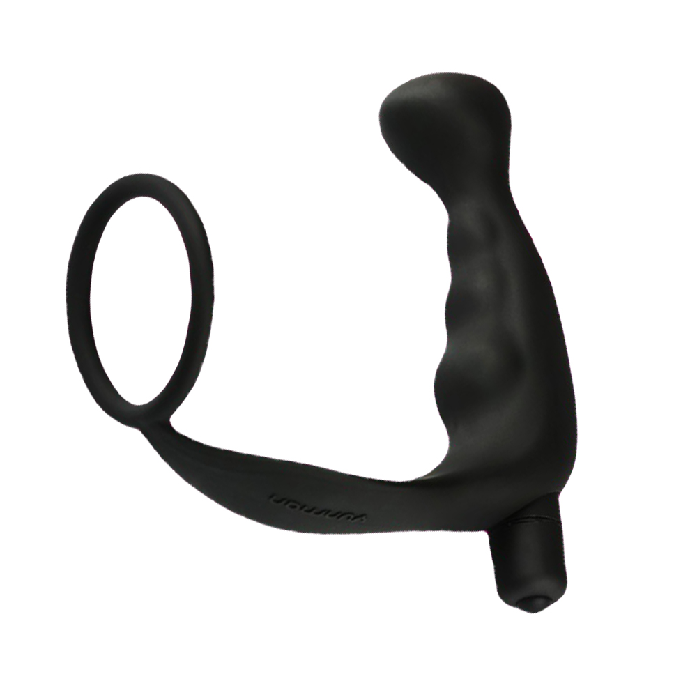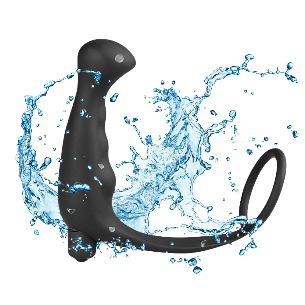 Черный массажер простаты с кольцом на пенис и вибрацией, водонепроницаемый