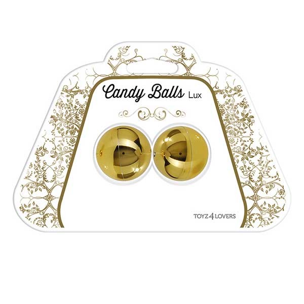 Вагинальные шарики CANDY BALLS LUX GOLD. Имеют смещенный центр тяжести. Приятное на ощупь покрытие. Диаметр шариков - 3 см, длина связки - 22 см.