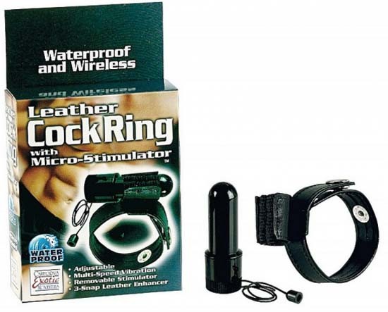 Кожанная эрекционная насадка с вибратором LEATHER COCK RING. Водонепроницаемый. Возможно использование без вибратора.