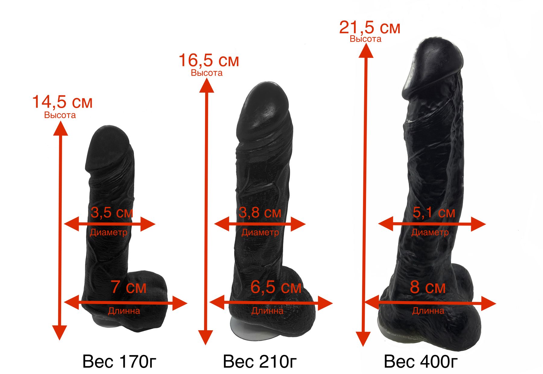 средство представлено в размере XL: его длина составляет 21,5 см, ширина основания – 8 см, а диаметр – 5,1 см.