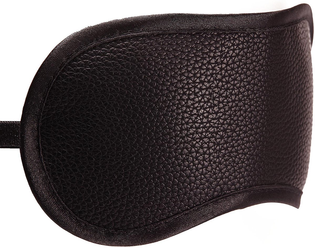 маска на глаза со специальной ленточкой размером 18 на 8 см. Внутри она обшита атласной тканью для комфорта, фиксация осуществляется при помощи резинки на голове;