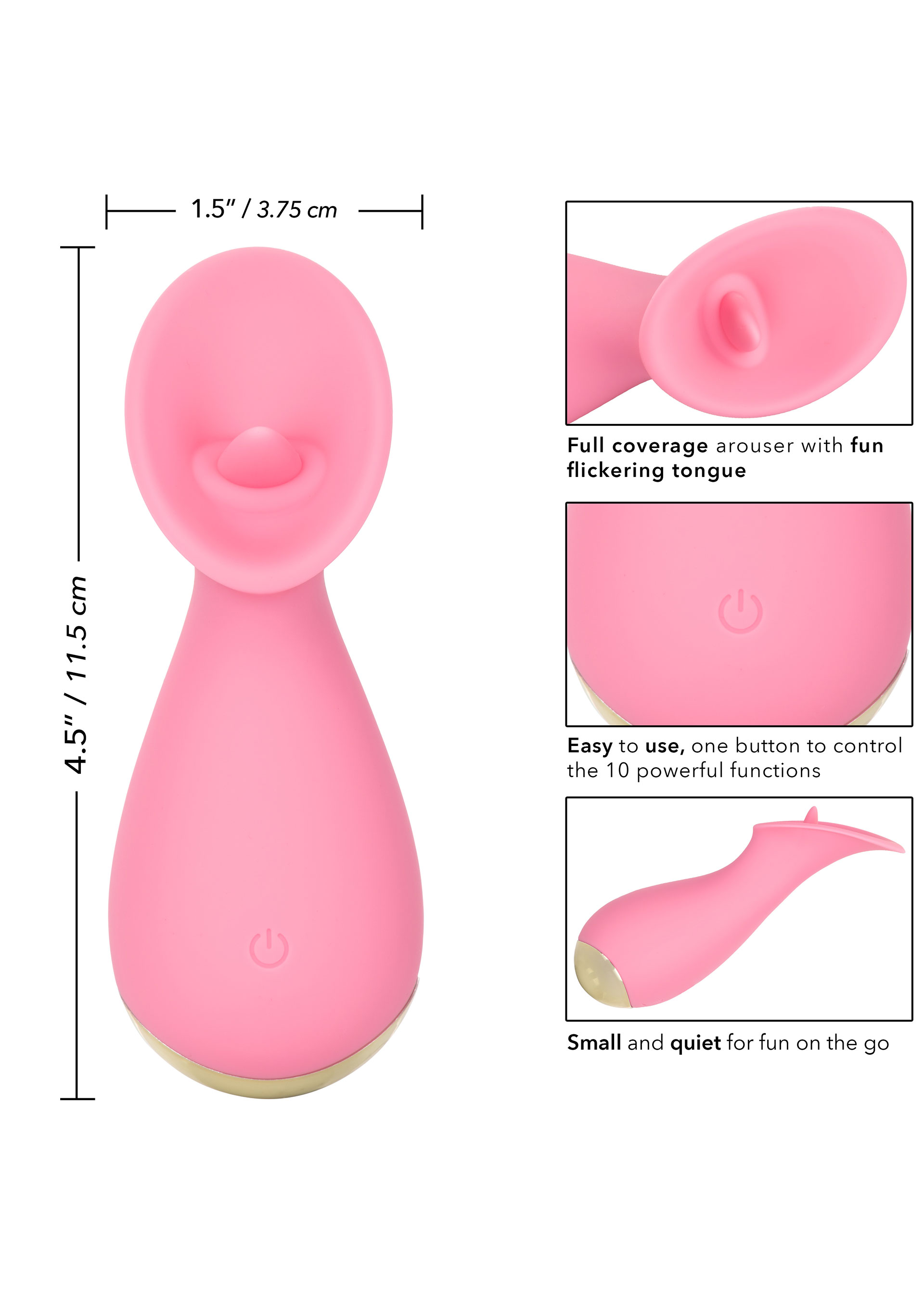 Продуманная форма и наличие настойчивого язычка идеально подходит для ласк самых сладких зон. Приятный на ощупь силикон гарантирует безопасный контакт с кожей. Материал отличается устойчивостью к износу, отличной передачей вибрации и долговечностью. Также он хорошо взаимодействует со смазками и лубрикантами на водной основе.