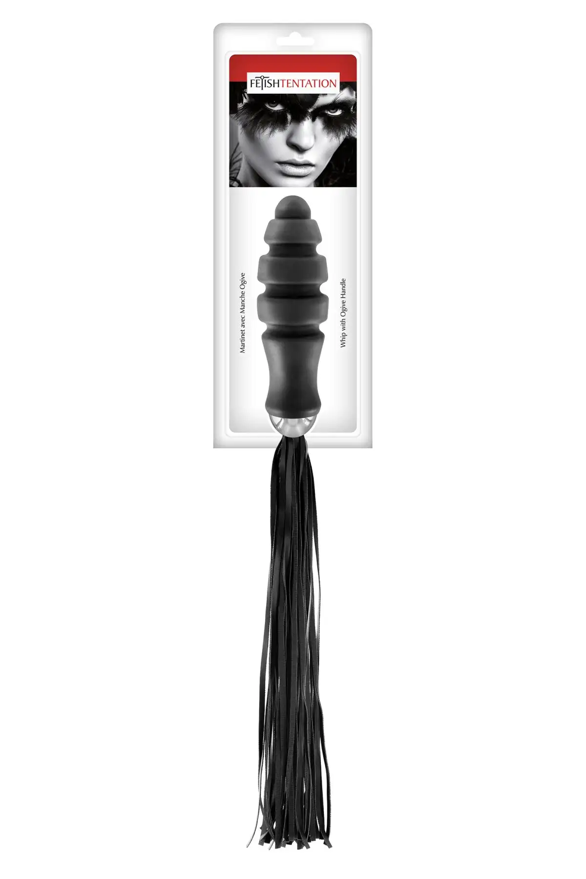 Кнут Fetish Tentation Whip с рукояткой Ogive, обязательный аксессуар для любого энтузиаста БДСМ. Этот флоггер предназначен для того, чтобы доставлять интенсивные ощущения и производить неизгладимое впечатление на вашего партнера.